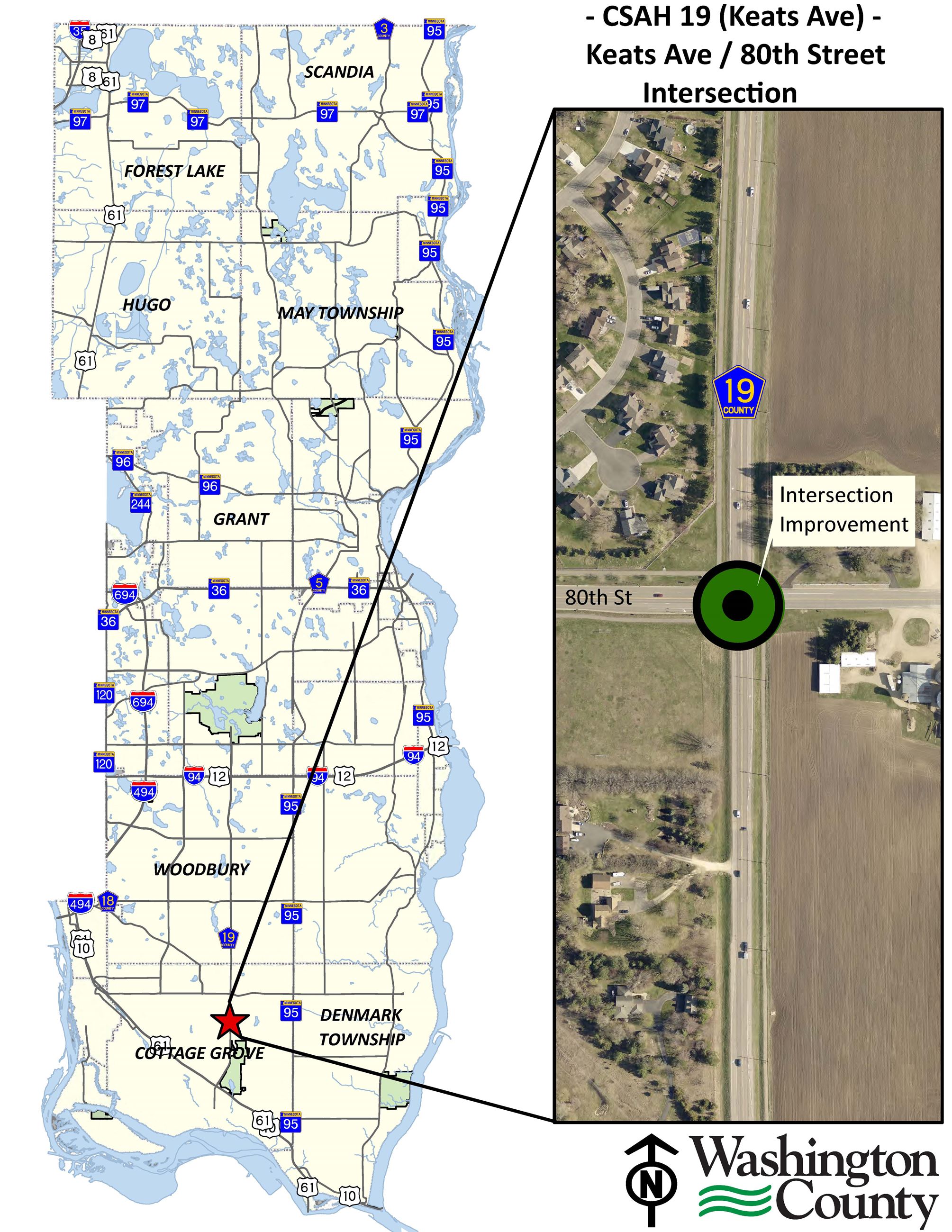 - Intersection of County Highway 19 (Keats Avenue) and 80th Street in Cottage Grove.