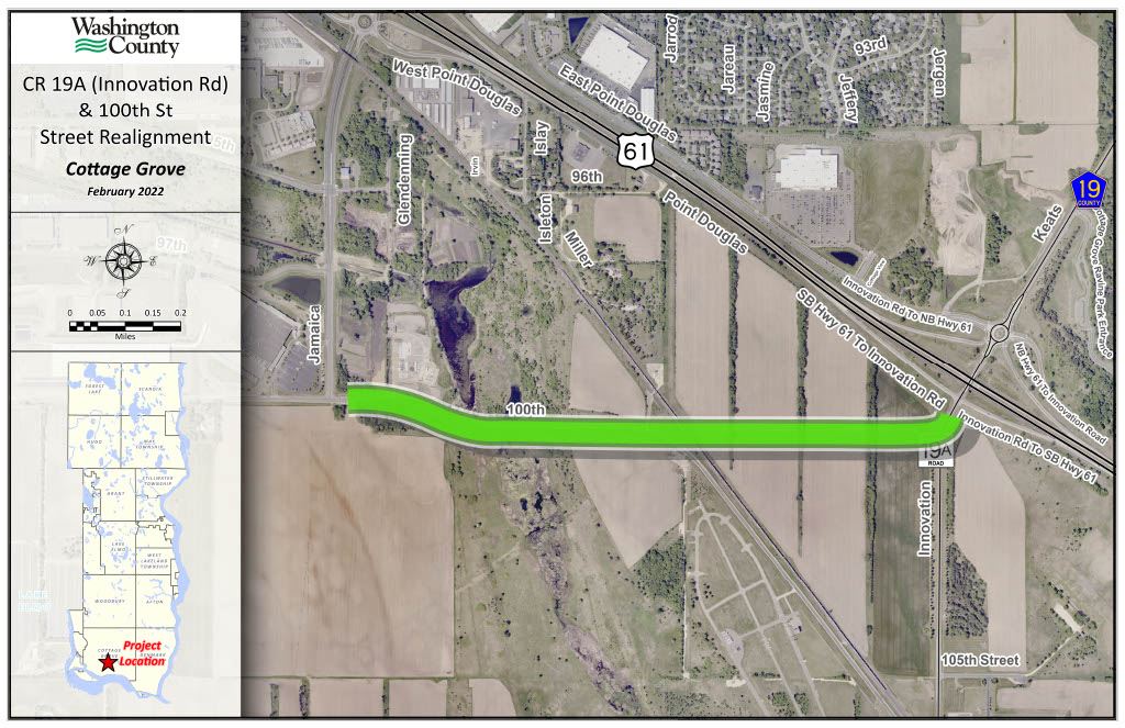 This project was identified as a portion of the Southwest Washington County Arterial Study which determined a County Highway route from the interchange at TH 61 at CR 19A (Innovation Rd) to the Lower Grey Cloud Island.