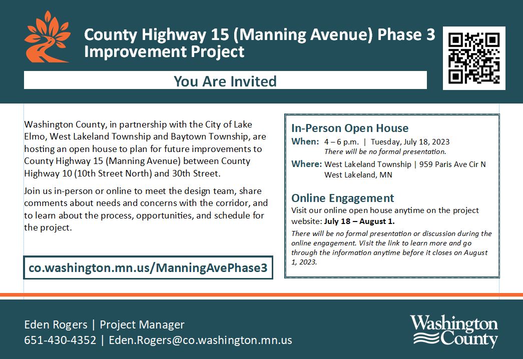 The third phase of the Manning Avenue (County Highway 15) Corridor Management and Safety Improvement project will: