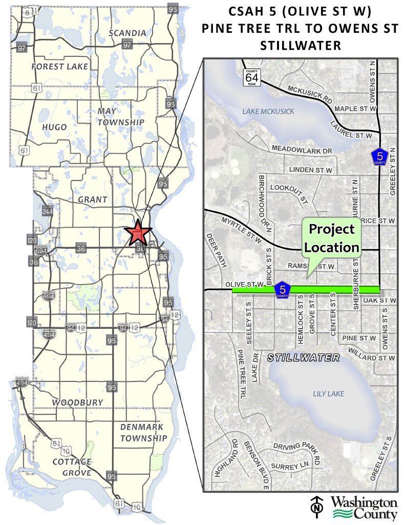 - County Highway 5 (Olive Street) from Deer Path to Owens Street in the City of Stillwater.